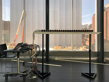 Almost all of my musical works are created in relation to the unique qualities of a given space. Over the past few years I have specialized in multichannel spatial audio, with a particular interest in Wave Field Synthesis, a form of spatial audio that employs a large number of small speakers to create highly realistic sound source images in space. I currently design and build Wave Field Synthesis (WFS) systems that are portable and flexible. In Autumn 2021, I publicly premiered my first complete system, the Model A: a 24-channel, single-height, fully modular array, built with a focus on sound installations in small to medium-sized rooms.